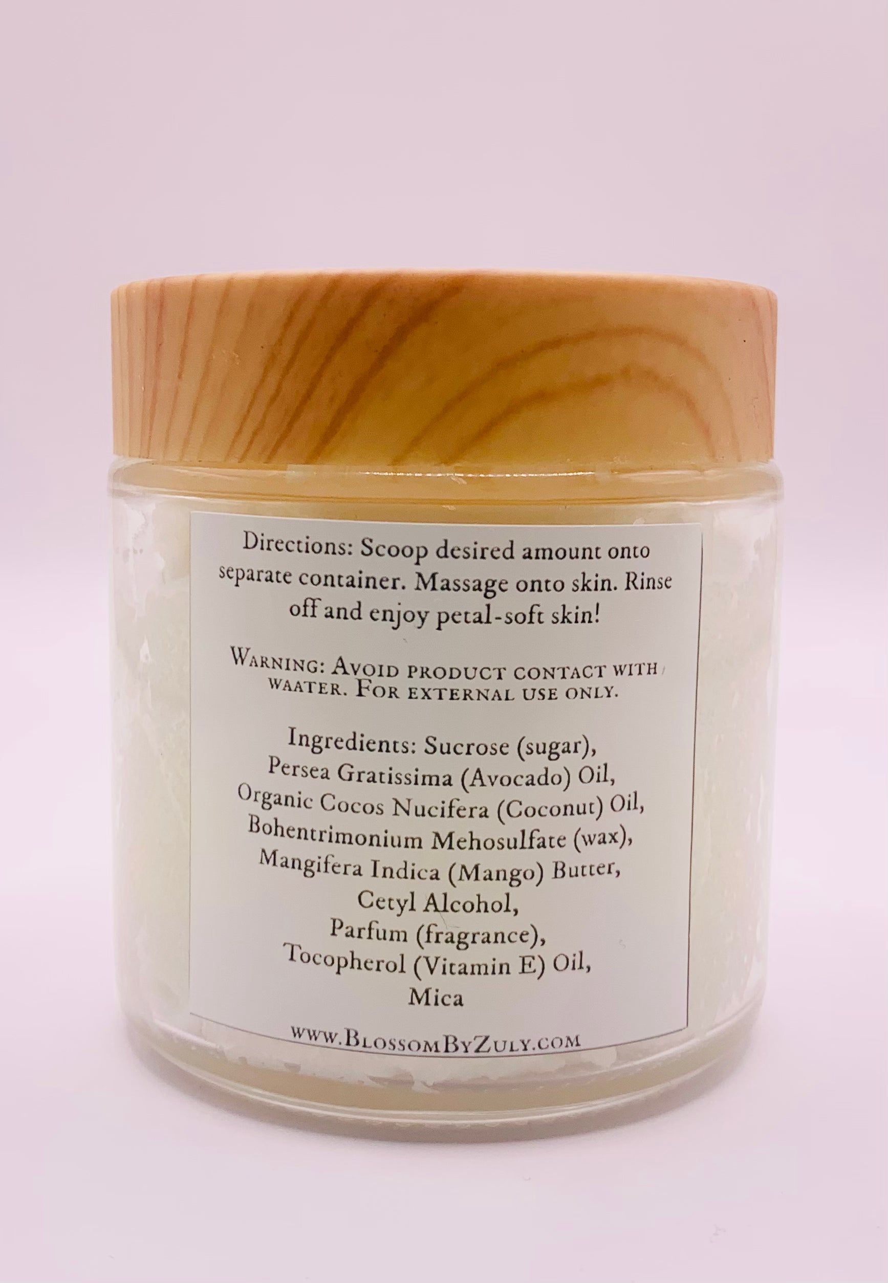 Gently polish away dull skin with our whipped sugar body scrub. This airy, nourishing blend smooths and softens as it exfoliates, leaving your skin silky, refreshed, and beautifully cared for. Crafted with sugar, avocado oil, mango butter, coconut oil, and vitamin E for a touch of everyday indulgence.